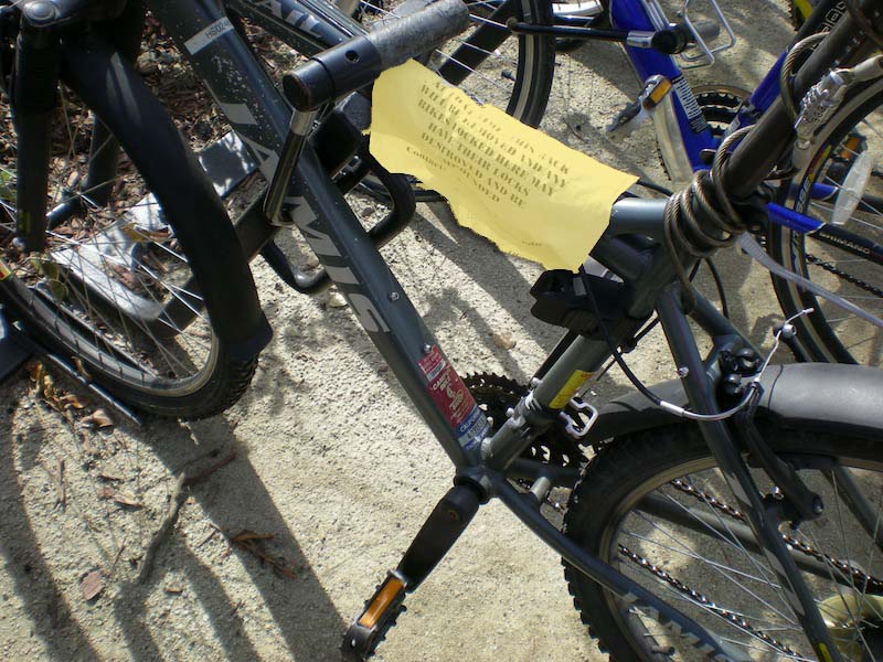 Before the citation, his bike could be found obstructing the walkways of the quad, locked to door handles, or even secured to the leg of a Rodin sculpture near the Cantor Arts Center.